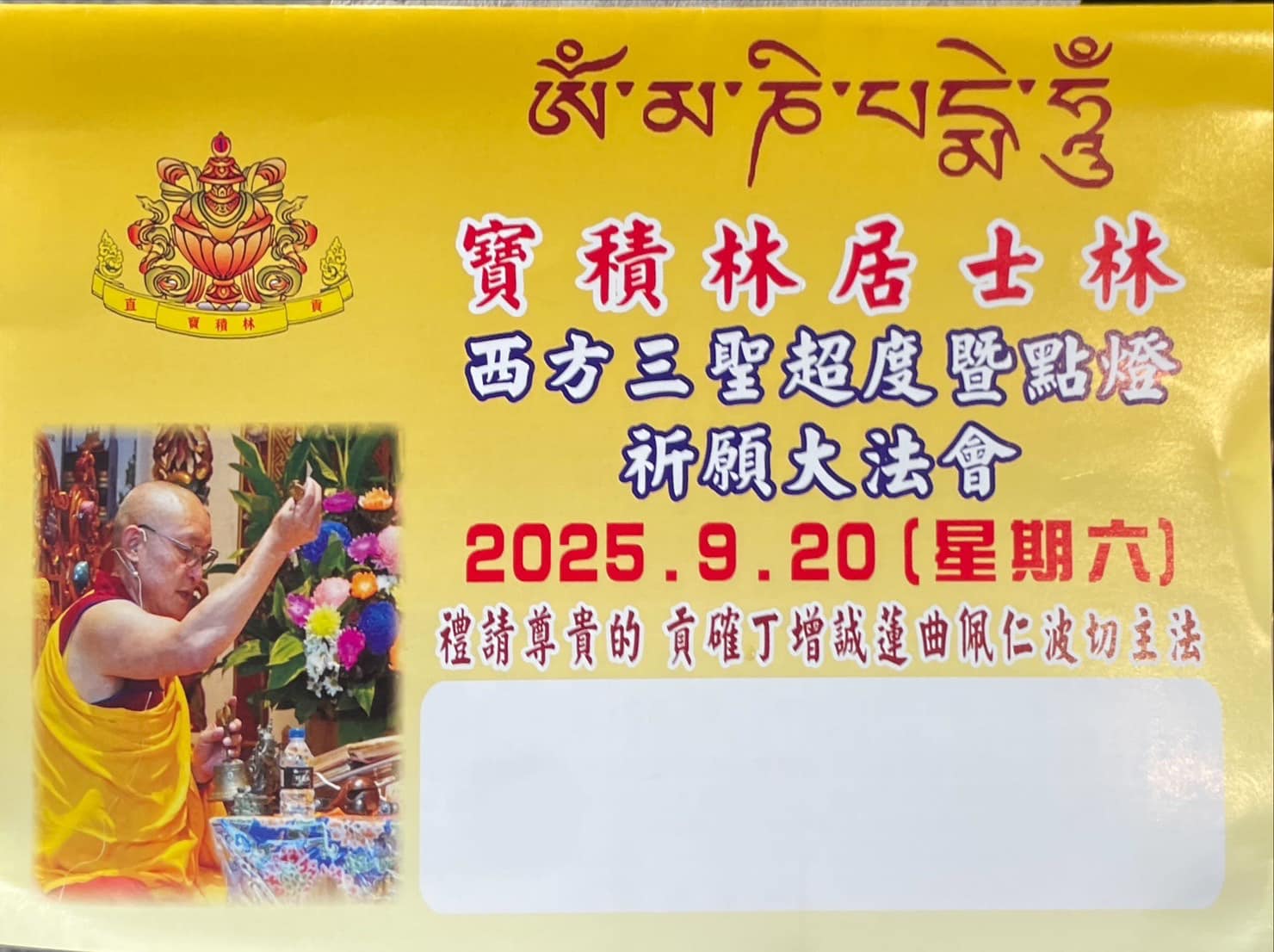 將於 114年9月20日(農曆7月29日)隆重舉辦 「西方三聖超渡暨點燈煙供中元普渡大法會」,誠摯邀請大家共襄盛舉!