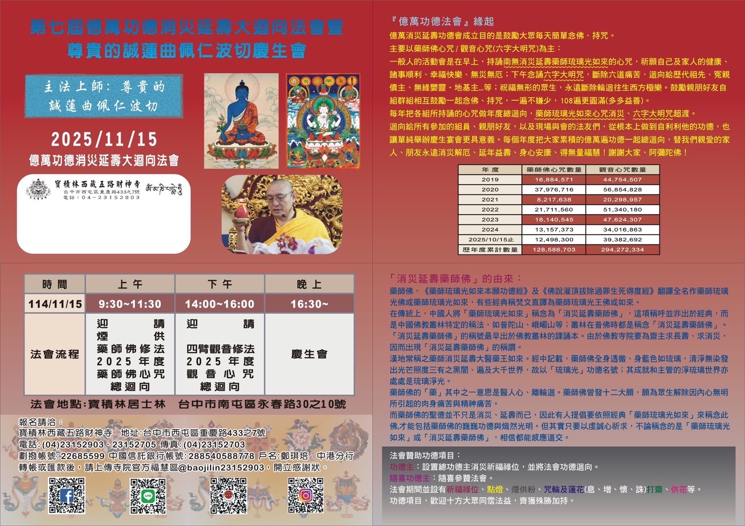 第七屆【億萬功德消災延壽總迴向法會暨尊貴的誠蓮曲佩仁波切慶生餐會】